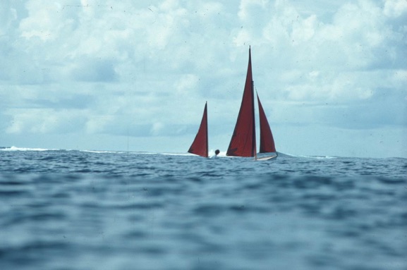 Three of the photographs above were taken by Charles Mason of SAIL magazine in Tahiti 1979. The ariel shot--actually taken from a bridge--by Suzanne in San Diego 1978.