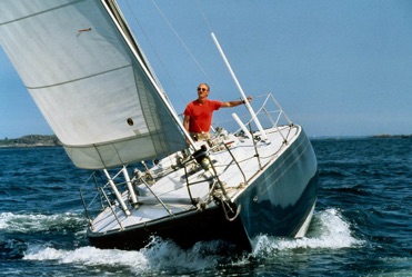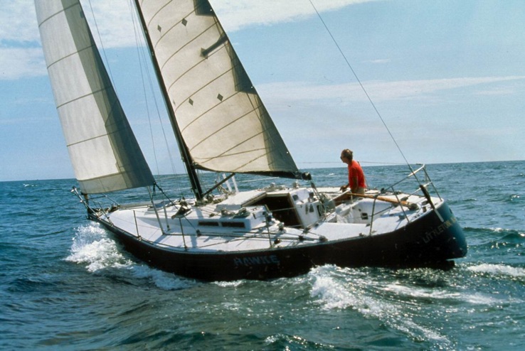 THE HAWKE OF TUONELA is the same length, 37’, as EGREGIOUS and almost the same age. I was rounding Cape Horn for the first time when she was launched thousands of miles to the north in Florida in December 1975. These photos were taken off Boston in 1995.