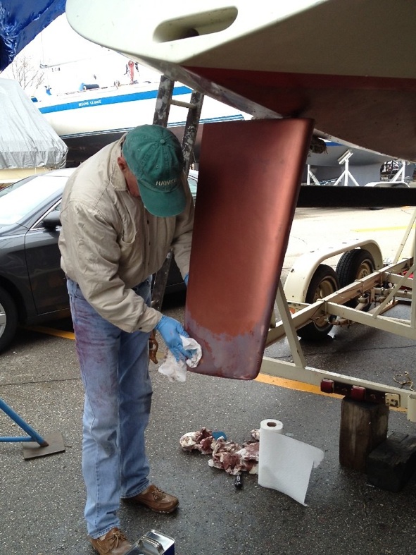 After my initial alcohol wipe down, GANNET had the most beautiful bottom of any boat I have ever owned, as hard and smooth as the burnished bronze it resembled. Certainly it would have been fast; and perhaps on a boat that lived out her life on the Great Lakes excellent.